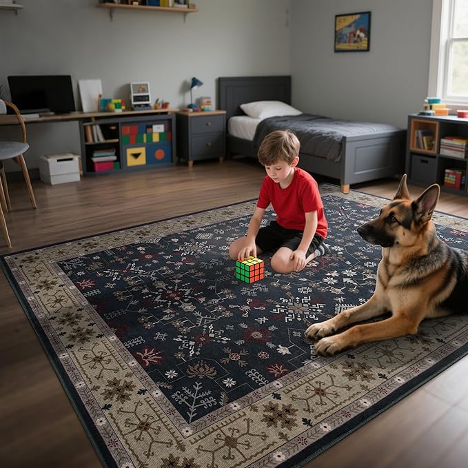 • Kid & Pet-Friendly Rug: The washable rug handles spills and playtime messes-spills, stains... The 0.2-inch low-pile design prevents pet dander and hair from getting trapped inside, avoids them from chewing or scratching and protect your floors