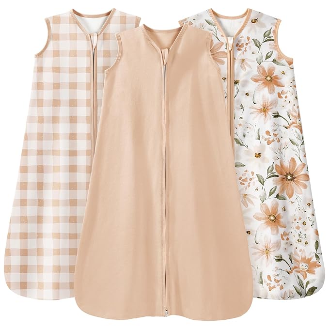 Baby Sleep Sack 12-18 Months 3 Pack 100% Cotton Lightweight 0.5 TOG Wearable Blanket Baby Sleep Bag with 2-Way Zipper for Newborn Infant Orange Flowers & Plaid