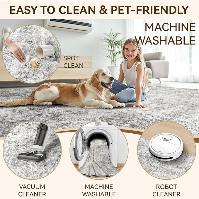 • Tides Series – Effortless style that flows with your life.This modern machine-washable non-slip rug features reinforced edges and a low-pile design that resists dirt. Its water-repellent surface makes spills easy to clean - liquids bead up for quick wiping. Simply machine wash in cold water (no bleach) to refresh. The non-slip backing keeps it securely in place. A perfect blend of function and contemporary design for active homes.