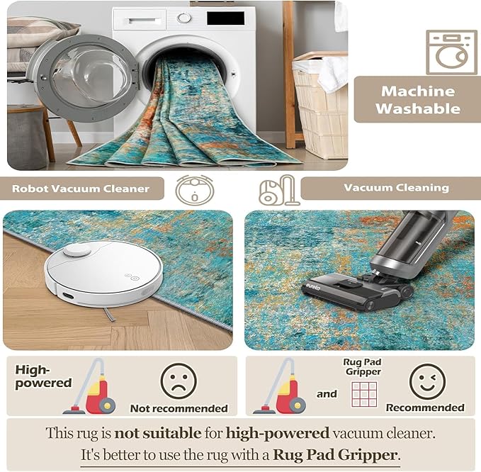 • Tides Series – Effortless style that flows with your life.This modern machine-washable non-slip rug features reinforced edges and a low-pile design that resists dirt. Its water-repellent surface makes spills easy to clean - liquids bead up for quick wiping. Simply machine wash in cold water (no bleach) to refresh. The non-slip backing keeps it securely in place. A perfect blend of function and contemporary design for active homes.