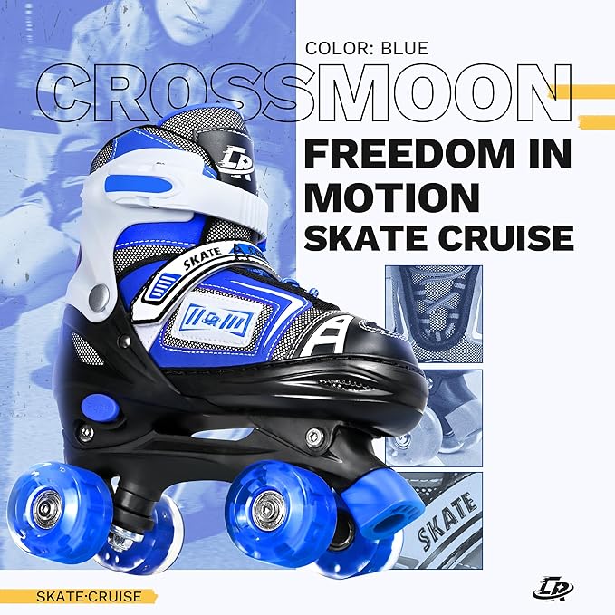 • ✔️ 4 Size Adjustable – One Pair Fits Multiple Sizes Designed to grow with your feet, these quad skates adjust across four sizes for a long-lasting fit, ideal for boys, girls, teens, and adults.