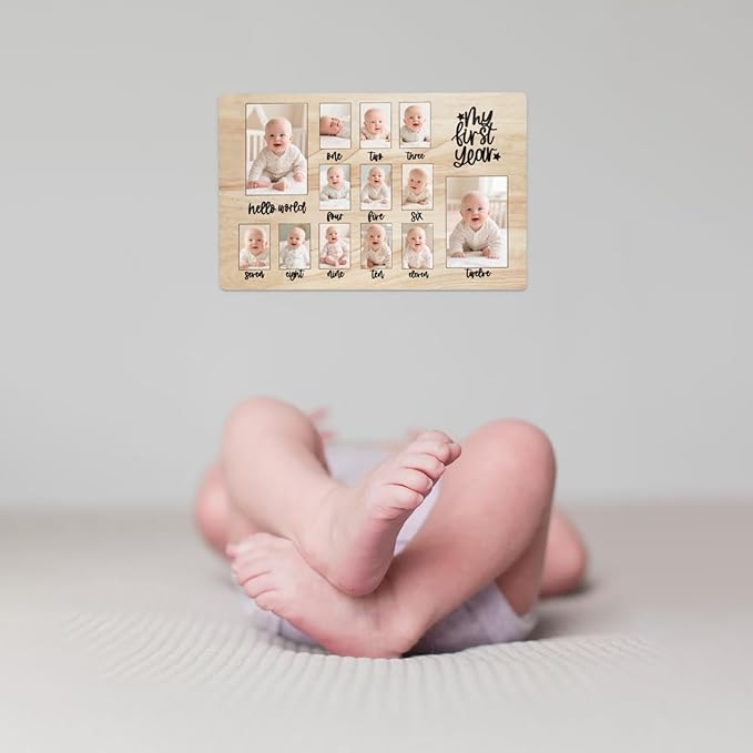 • CUTE KEEPSAKE FRAME --- This beautiful photo board features an engraved pattern. The adorable baby keepsake frame documents and displays your baby girl or baby boy's first-year monthly growth. It also becomes a gorgeous keepsake after the party.