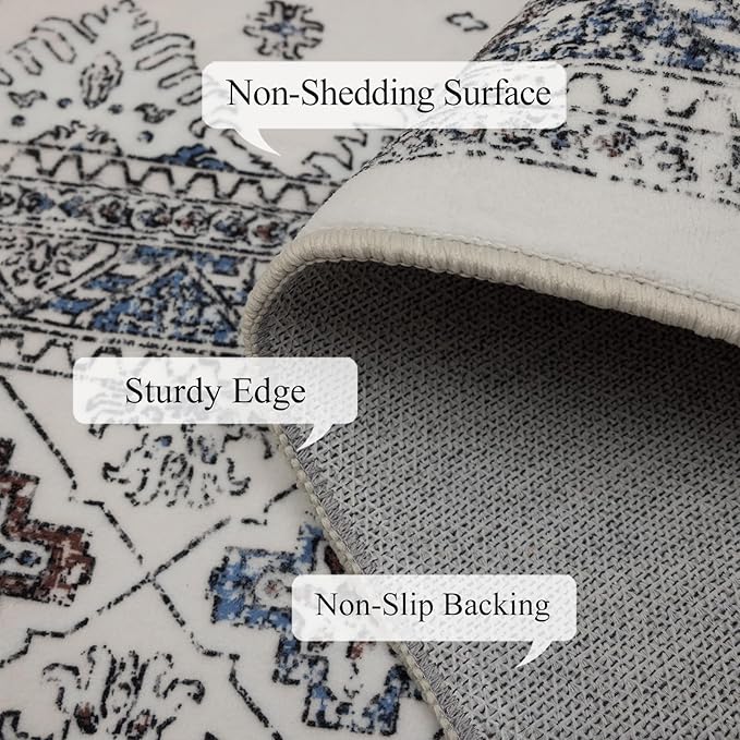 9x12 Area Rug Living Room Rugs, Stain Resistant Washable Rug, Vintage Large Non-Slip Backing, Low Pile Lightweight Print Rug for Bedroom Dinning Room Home Office (White Cream/Gray)