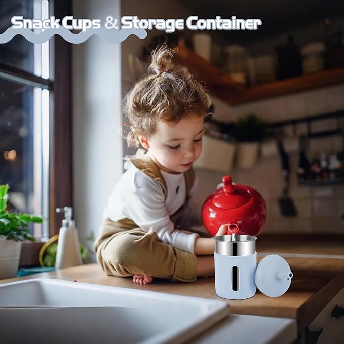 • ✅ 2-in-1 Versatile Toddler Cups Drinking and Snack Cups- Our Versatile toddler cups each set comes with drinking straws and lids, that means these 2-in-1 stainless steel cups can be used both as drinking cups and snack containers for kids,it is also a ideal spill-proof kids smoothie cups!