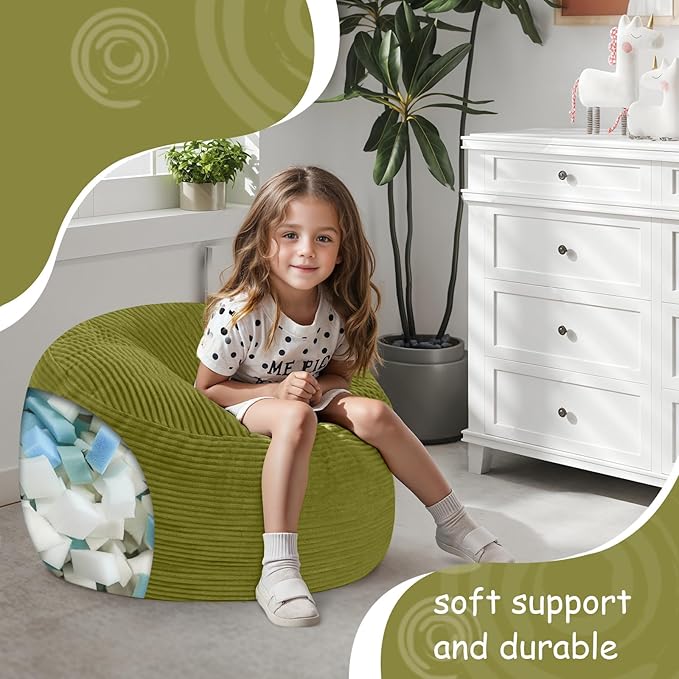• Soft Fabric: This toddler bean bag features corduroy fabric that offers an exceptionally soft touch, making it perfect for close contact. Which delivers comfort while boasting excellent durability. Small bean bag adds a touch of wonder to any kids' room