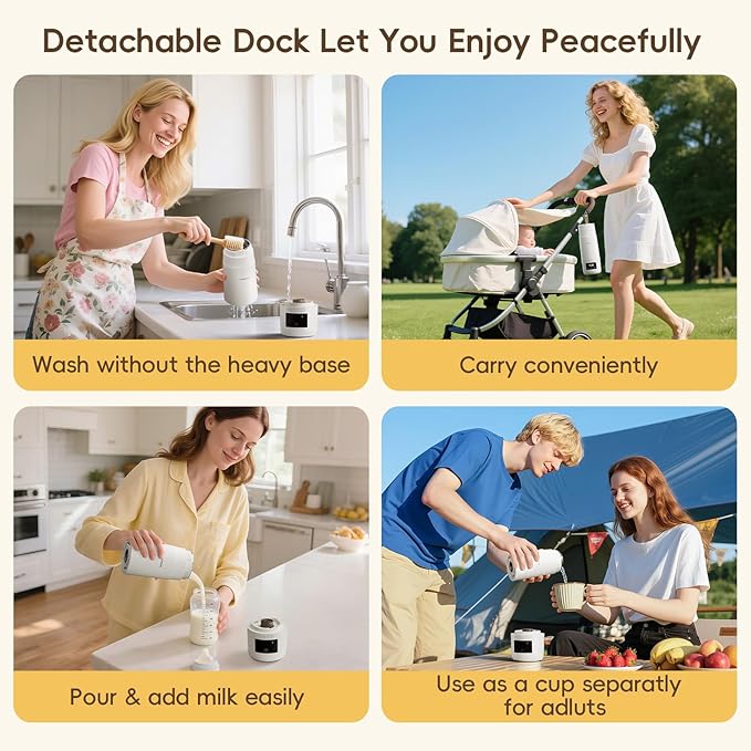 • Precise Temp Control & Display: Temperatures are preset for warming (99°F/104°F/113°F/122°F), you can easily adjust the temperature. Our sophisticated heating system realizes exact temperature regulation of ±1°C, promoting healthy digestion and preserving milk nutrients.
