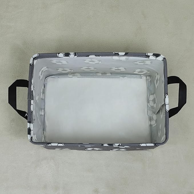 Rectangular Storage Basket Fabric Organizer Bin for Toys,Books,Clothes,Gifts,Pets-Perfect for Home,Office,Nursery,Dorm,Shelf(Rec-grey football )