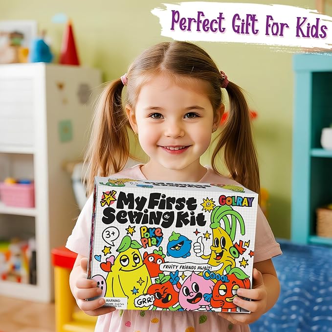 • My First Sewing Kit for Kids: This fruit sewing kit for kids includes 7 pre-cut fruit projects made of premium felt and soft faux leather with self-adhesive stickers for arms, legs, eyes, and more accessories. Plus 6 plastic needles, 1 detailted manual, and 8 colors of embroidery thread, all packaged in a exquisite box. We offer everything you need for beginners to start right away and enjoy success