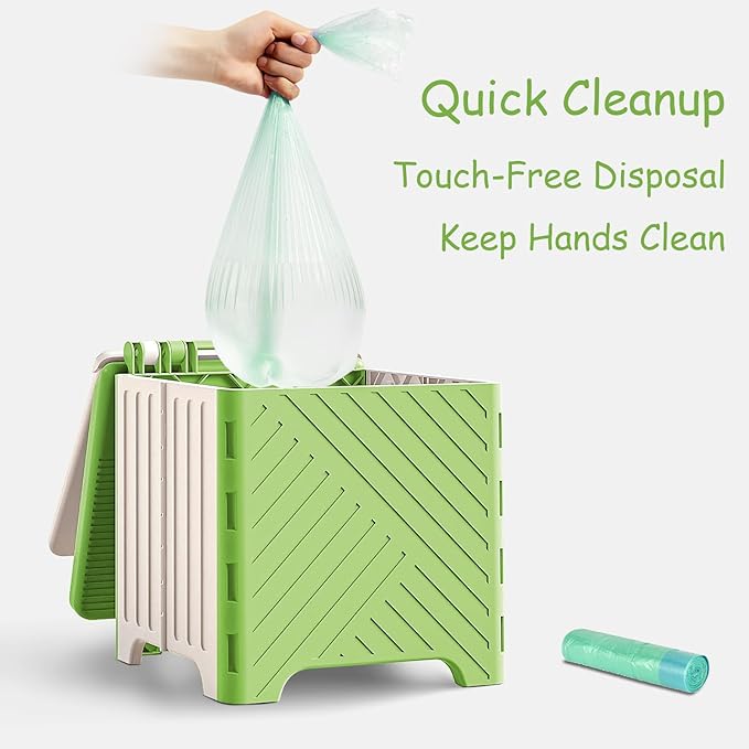• Hygienic & Hassle-Free Cleanup: The storage compartment built into the potty seat's lid comes with 1 roll of cleaning bags. Simply seal and discard waste without direct contact—perfect for emergencies or public restroom avoidance.
