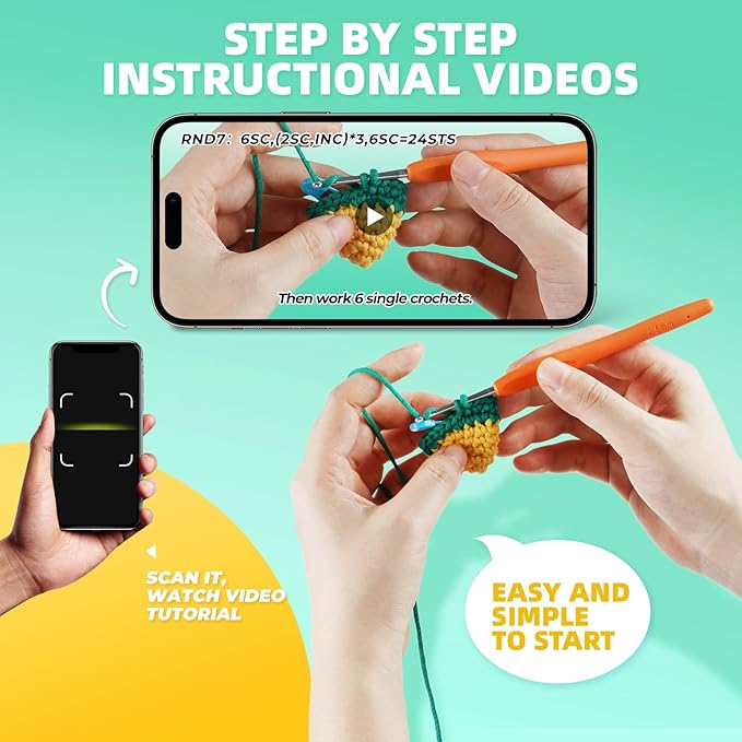 • 【Step-by-Step Tutorials】 Each crochet kit for beginners comes with text and step-by-step video tutorials. Beginner crochet kit ensures that you feel confident as you learn new stitches, making it a great choice for crochet kit starters.