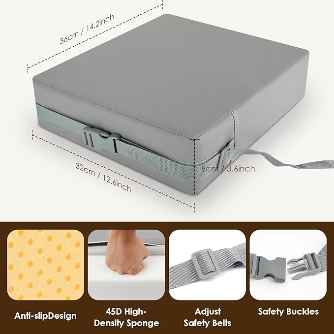 • 🎒【Portable, Versatile & Great for Floor Use Too】:Lightweight and easy to carry, this table booster seat doubles as a floor cushion for reading, playing games, or watching TV. The kitchen booster seats for toddlers 2-5 design makes it a go-to for home, outings, or restaurants. Please allow 24 hours after unpacking for full expansion.