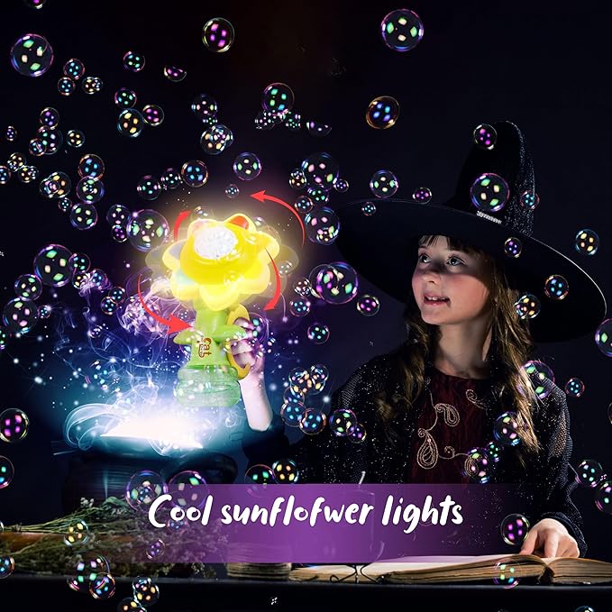 • Dance With Bubbles: The newly upgraded flower bubble machine can produce 20,000+ bubbles per minute, rotating at your own pace to bring vitality and movement to any scene. Unlimited bubble fun for all ages: Watch the air fill with sparkling bubbles and create unforgettable memories for kids and adults alike! Whether it's a birthday party, a backyard gathering or a fun-filled playtime, our bubble machines create a magical atmosphere that appeals to all.