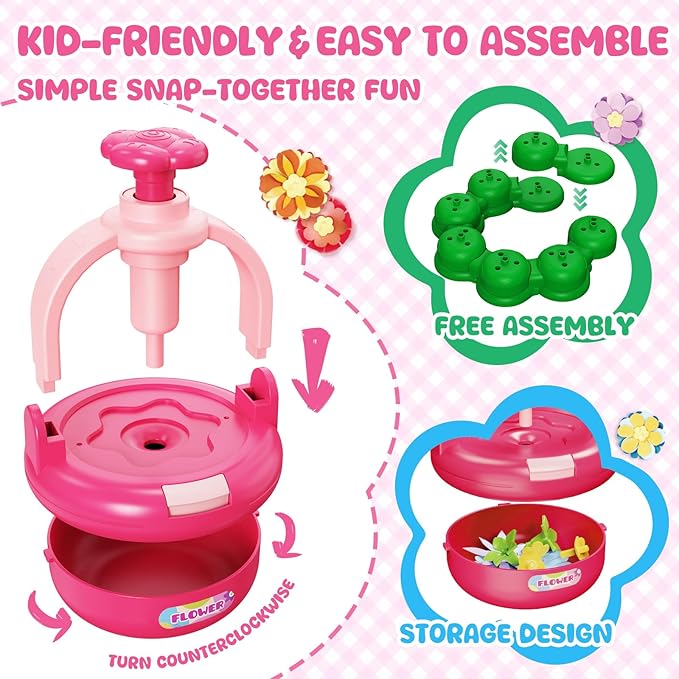 • ‌Complete Toy Flower Bouquet Kit with Storage Function‌: Flower making toy package includes: flower making machine, petal, stems, stamen, receptacle, vase, bouquet wrapping paper, bases and step-by-step visual guides. Fabric flower making kit designed for collaborative play, encouraging quality time between parents and children through shared creative projects.