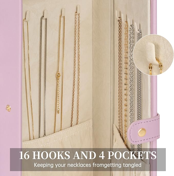 • Large Mirror Grab-and-Go Handle, This mirrored jewelry box comes with a built-in large mirror on top lid, making it easier to dress yourself. The lid has a ribbon attached to keep it from falling back. With a grab-and-go handle, convenient to carry around; delicate buckle for one-hand easy opening, easy to use and saving your time