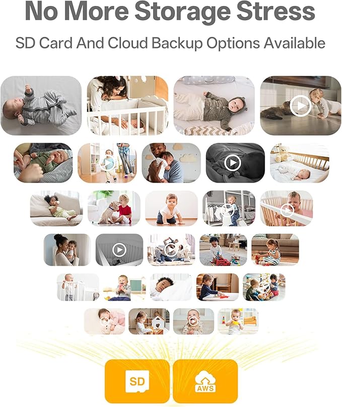• Upgraded Protection & Caring:The baby monitor with 2 cameras With cry & sound detection, motion & danger zone detection,auto traking,temp.& humidity detection and feeding reminders, this monitor offers additional layers of security. With advanced FHSS encryption technology, it supports browsing records checking and user connection control to ensure your safety and privacy.So you can rest assured that you're the only one who can hear and see your baby