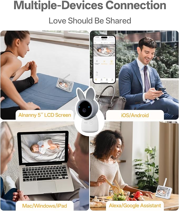 • High-Resolution & Enhanced Night Vision: Our AInanny Baby monitor features a 5-inch 720p resolution high-quality color LCD screen with a 4x magnification function. It shows a sharp picture with 10 times more detail than ordinary 240p baby monitors. When you're out, you can watch or remotely control the camera through the free mobile app, which provides 2K resolution video. You can see your little one's delicate movements clearly.