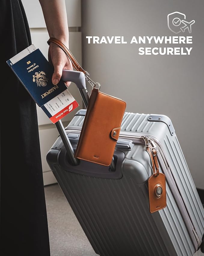 • Complete Travel Set with Airtag-Compatible Luggage Tag: With your purchase, you’ll receive a feature-packed travel wallet with wrist strap and a detachable luggage tag designed with an Airtag slot. No more worries about lost passports or baggage—attach the tag securely to the passport holder or your luggage, and track it easily using the Find My app. Note: Airtag not included