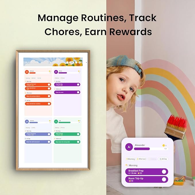 • Interactive Chore Chart & Routine Planning — Powered by our self-developed ApoloSign Calendar system—assign tasks, track with color codes, motivate kids with a rewards system, and manage grocery, shopping, or wish lists from the Calendar or Mobile App.
