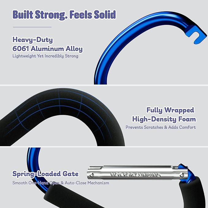 • Durable, Lightweight Aluminum Build with Multiple Color Options: Constructed from heavy-duty aluminum with a comfortable foam grip, the clip combines strength and style, securing stroller bags firmly without adding extra weight
