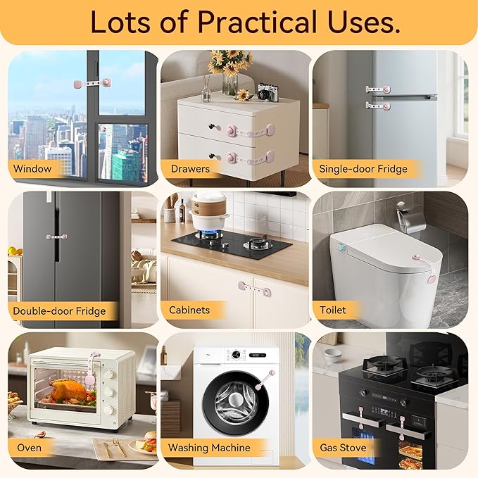 • Complete Baby-Proofing Solution: We specialize in high-quality baby-proofing-Trusted Child Safety Brand—cabinet locks, fridge locks, Toilets Locks, and more. ensure your toddler grows up safe and happy .From kitchens to bathrooms , ✔️ Drawers (knives, utensils) ✔️ Fridges (food, chemicals) ✔️ Toilets (drowning risk) ✔️ Ovens & dishwashers (burns)