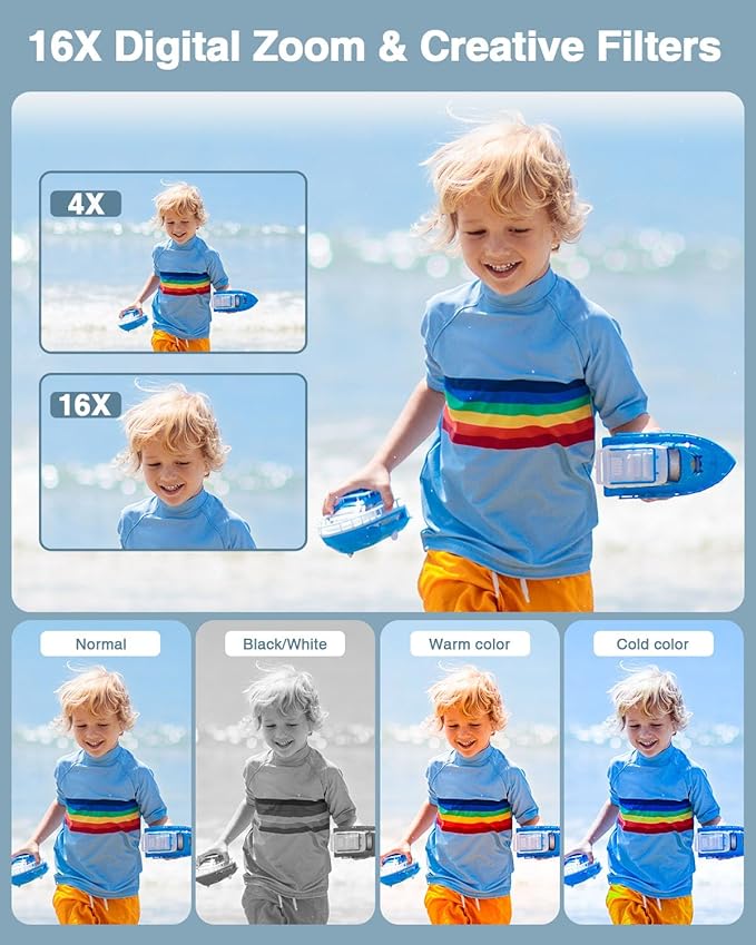 • SAFE MATERIALS & CREATIVE FILTERS - Made of high-grade and eco-friendly reliable materials, the kid camera is safe and non-toxic, durable and withstands drops. This digital vlogging camera for teens also supports six cute filter effects to choose from, kids could create more adorable colorful pictures.
