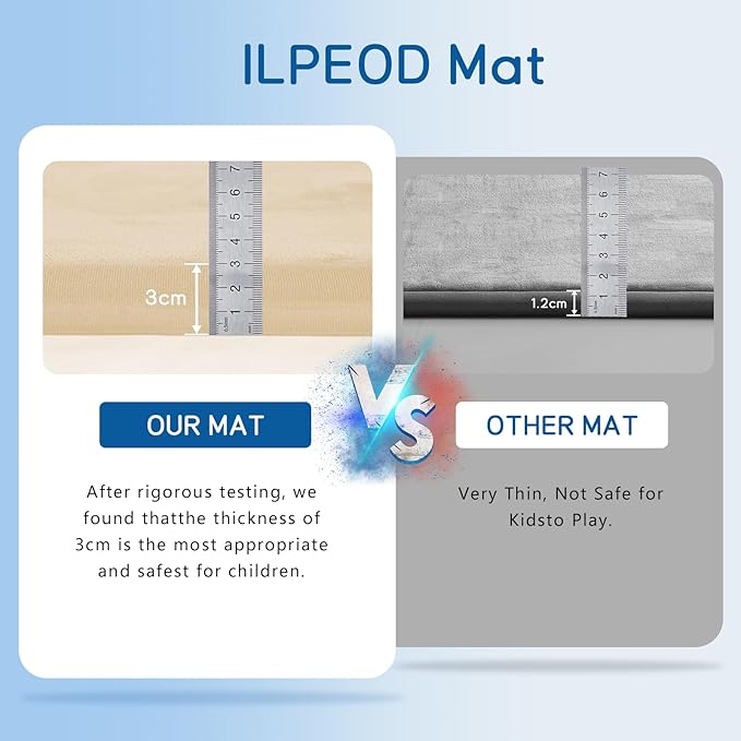 • 🌟HOW TO CARE FOR YOUR MAT:When you open the package,it may be wrinkled,very flat and inelastic.Don't fret - this is normal! As long as it is left for 3-5 days, the mat will naturally regain its thickness and elasticity. we recommend steaming or ironing it to speed up recovery. After you have completed the steaming/ironing, your thick floor padded mat should rebound and be ready to use!