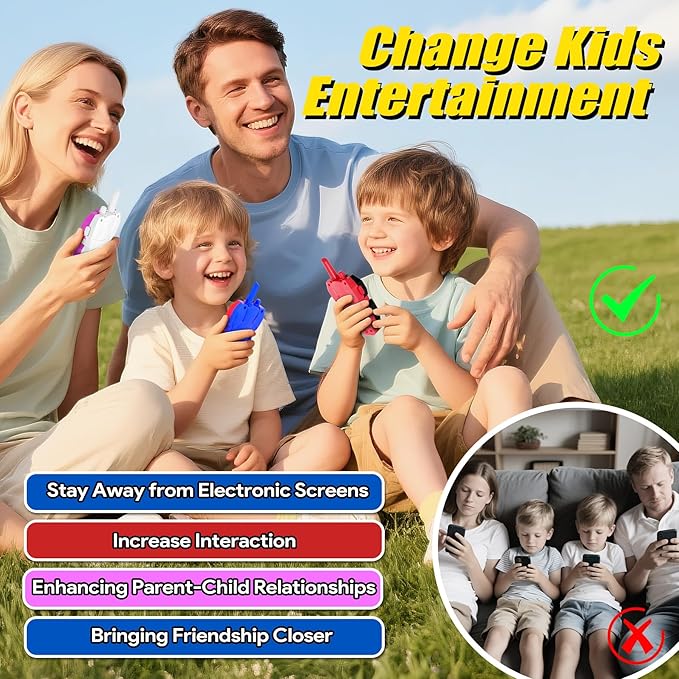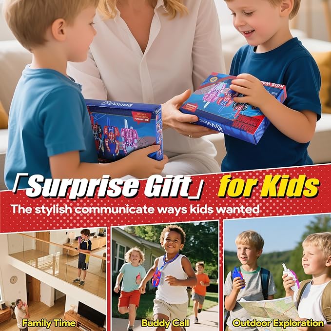 • Clear Sound & Long Range : Experience kids walkie talkies crystal-clear sound with a communication range of up to 1000FT. Whether your kids are playing indoors or outdoors, Vvinca walkie-talkies ensure they stay connected with no static or interference.