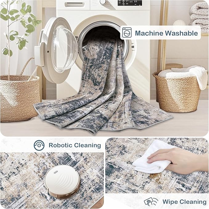 • Easy To Clean And Care: The low-pile design of the washable rug 8x10 makes it easy to find and clean stains in time, so you can just wipe and sweep the carpet on a daily basis, and the bedroom rug can also be put in the washing machine for a quick clean, it is easy to dry quickly, saving your time.