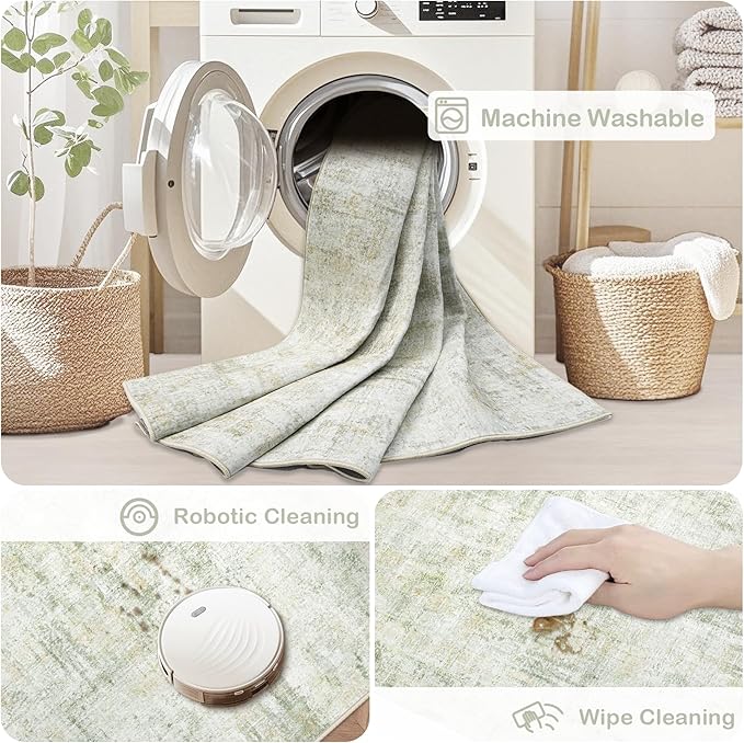 • Anti-Stain Low Pile Rug: Our washable rugs surface pile are short and dense, can block dust and hair embedded, spilled drinks coffee and other liquids will not penetrate into the neutral rug inside; Our 8'x10' large rug is moderately thick and won't snag on doors, which not only keeps indoor rugs clean, but also adds convenience for high traffic areas.