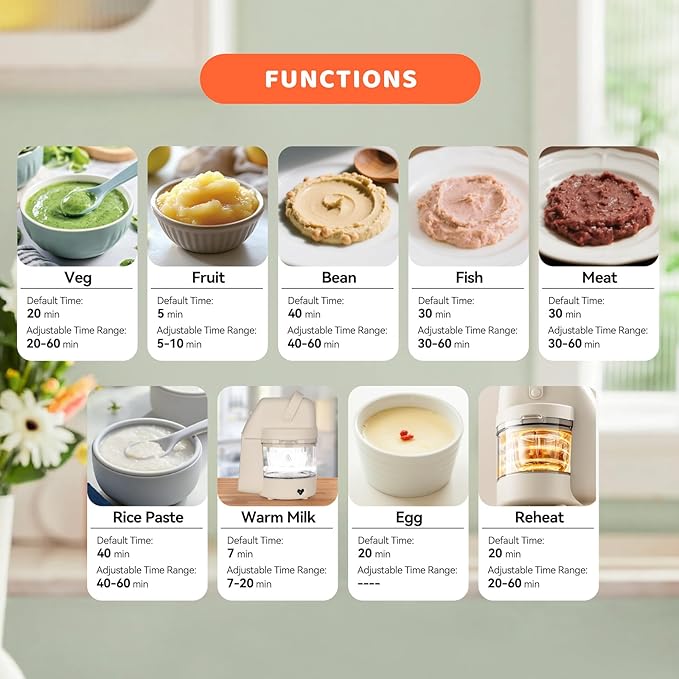 • 【POWERFUL STEAMING & BLENDING】 – 450W heating for fast cooking, plus integrated stirring. Schedule meals with the 24-hour timer so you can spend more time with your baby.