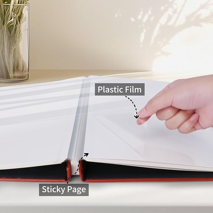 • 【PERFECT SELF-ADHESIVE DESIGN】: Transparent plastic overlays are self-adhesive to the page and hold photos tightly and clearly.No extra glue needed, more convenient and eco-friendly.