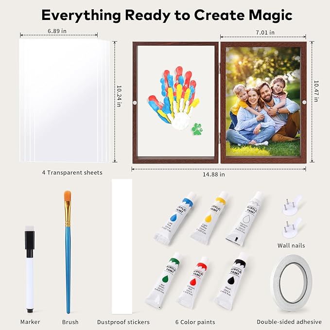 • EVERLASTING FAMILY TIME CAPSULE: Capture the fleeting moments of your child's growth in timeless elegance–each handprint tells a story that grows more precious as the years pass. Create your own artwork for your home with our lovely family handprint kit. Use the paints to print your hands on the insert, then display in the frame included