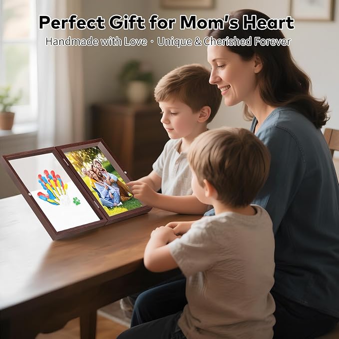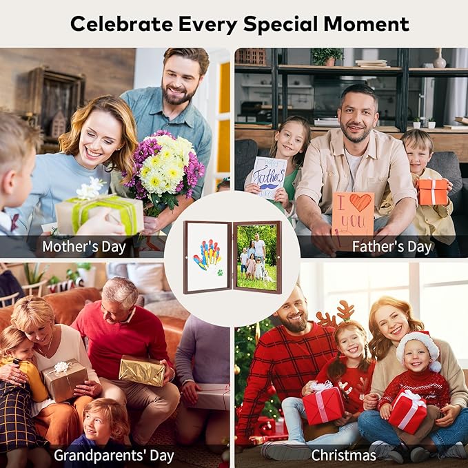 • DUAL DISPLAY MODES & PHOTO AREA: Our upgraded keepsake frame also have a photo frame feature, the photo side is big enough to hold one large photo or several smaller ones. Imagine this framed treasure on your living room wall: your toddler's tiny hand nestled in yours, surrounded by family photos that spark conversations for generations