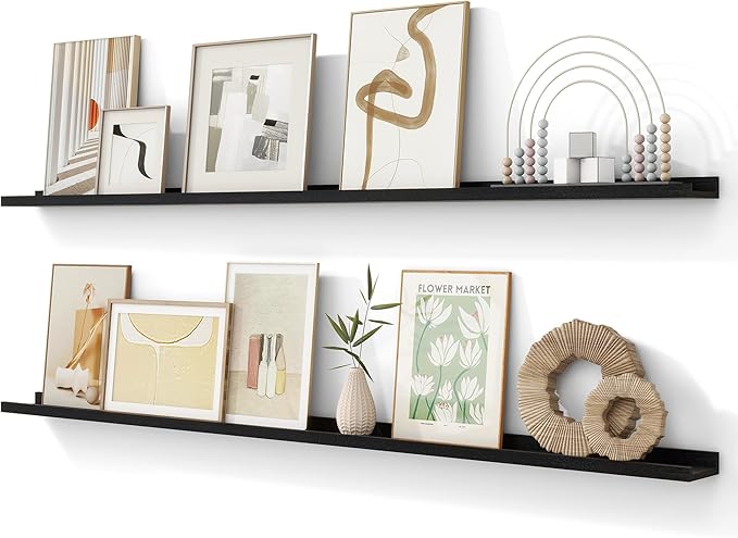 • Dual Picture Frame Shelves: Customize Your Space with Our Dual long picture ledge shelf. This set includes two versatile picture ledge shelf, perfect for personalizing your home. Whether you're creating a family photo gallery in the hallway or showcasing your collectibles, these ledge shelves provide the ideal solution. Ensuring strength and reliability for all your display needs
