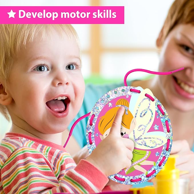 EZCRA Premium Foil Edge Lacing Cards for Kids Ages 3-6 | 5 Double-Sided Fairy Sewing Cards with Multilingual Learning | Durable Cardboard Fine Motor Skills Activity Kit