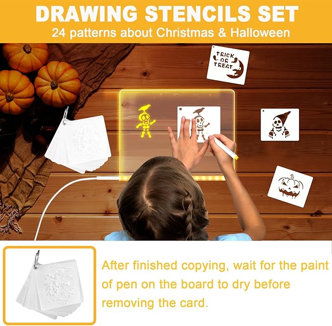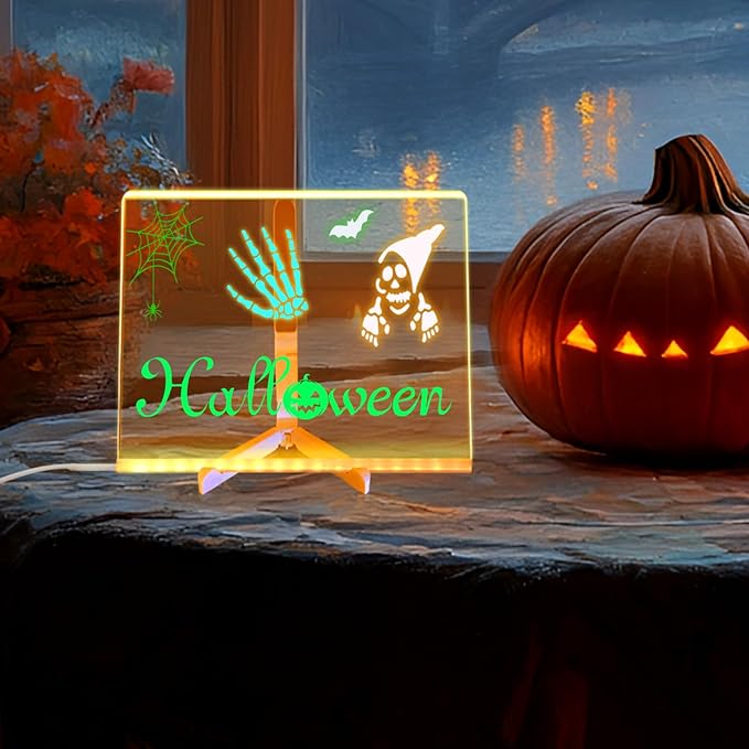 • DRAWING STENCILS SET INCLUDED - Package includes 24 pcs stencils for drawing. With 12 pcs for Halloween and 12 pcs for Christmas, which let you create decorative acrylic dry erase board easily and enjoy the fun with friends. And the led noteboard with colors also can be used as a featured message board, daily menu plan, or memo, study plan calendar and schedule