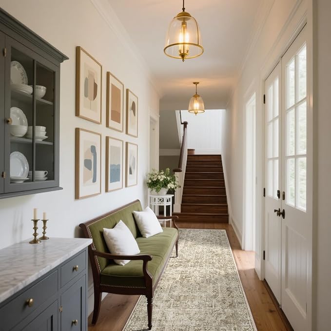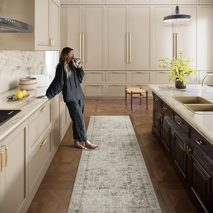 Machine Washable Kitchen Runner Rugs: 2'x10' Hallway Rug Non Slip Low Pile Stain Resistant Soft Carpet Runners for Hallways Indoor Entryway Kitchen Laundry Room Bedroom Farmhouse