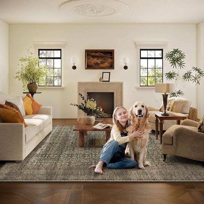 Machine Washable Rugs for Living Room: 5x7 Area Rugs Boho Vintage Rugs Stain Resistant Non Slip Low Pile Soft Lightweight Carpet for Bedroom Kitchen Dining Room Nursery Kids Room Farmhouse