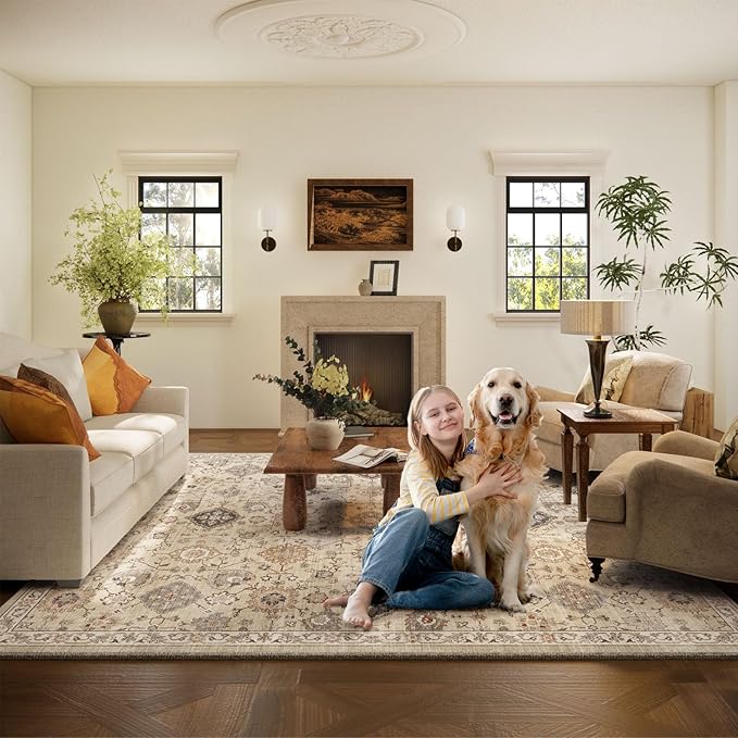 Machine Washable Rug for Living Room: 5x7 Area Rugs Boho Vintage Rug Stain Resistant Non Slip Low Pile Soft Lightweight Carpets for Bedroom Kitchen Dining Room Nursery Kids Room Farmhouse