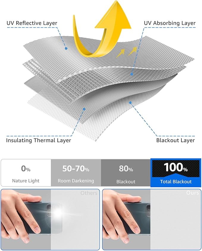 • 🍃【Enhanced Safe and Odor-Free Material】Prior to production,black out blinds for window undergo a factory disinfection process to ensure a odor-free experience, making blinds for windows blackout safe and friendly for both mothers and babies