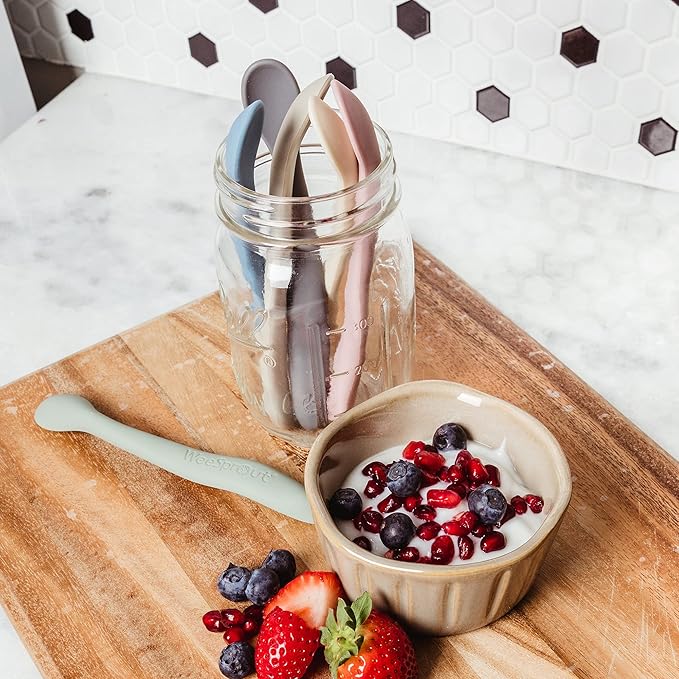 WeeSprout Silicone Baby Spoons - First Stage Infant Feeding Utensils With Soft-Tip, Bendable Kitchenware for Parent & Self-Feeding, Ultra-Durable, Dishwasher Safe, Travel Case, Set of 3