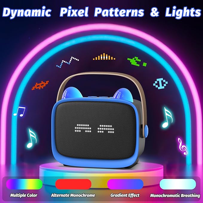 • 【Dynamic RGB Lighting & Patterns】 The kids Bluetooth speaker features vibrant RGB lighting with 3 modes (gradient, breathing, and steady glow) and 12 pixel-style patterns that switch to match the music’s rhythm. Perfect for boosting the party atmosphere!