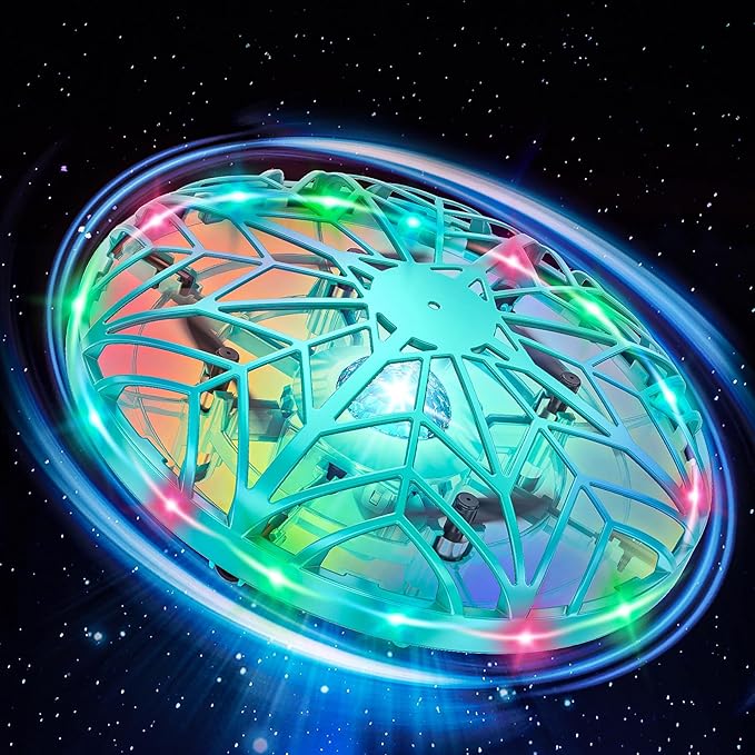 • 360° Rotating Flight Design: Fly this mini UFO drone toy with your hands! Place both hands on both sides of the drone, swipe a hand under when the lights start to blink rapidly, and watch this LED drone perform a 360° flip