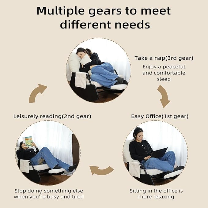 • Ergonomic Design with Three Adjustable Levels: The glider rocking chair is meticulously designed with ergonomic principles to protect your spine. The three adjustable settings cater to all your needs. It also features an optimized rocking motion, providing a more comfortable and stable experience