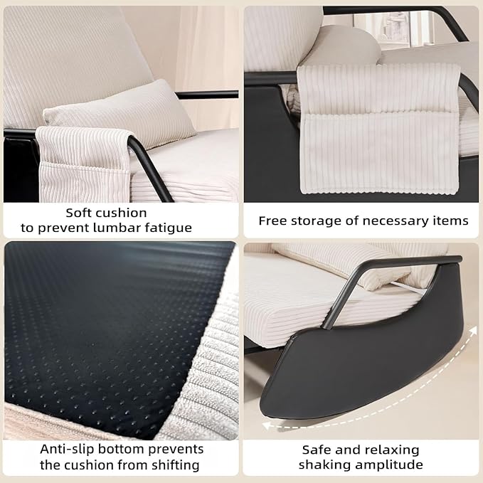 • Premium Weight Capacity & Comfortable Fabric and Padding: The nursery rocking chair is made with ultra-comfortable corduroy fabric and filled with memory foam for a double layer of relaxation for both your skin and body. The base is also equipped with anti-slip material to prevent sliding