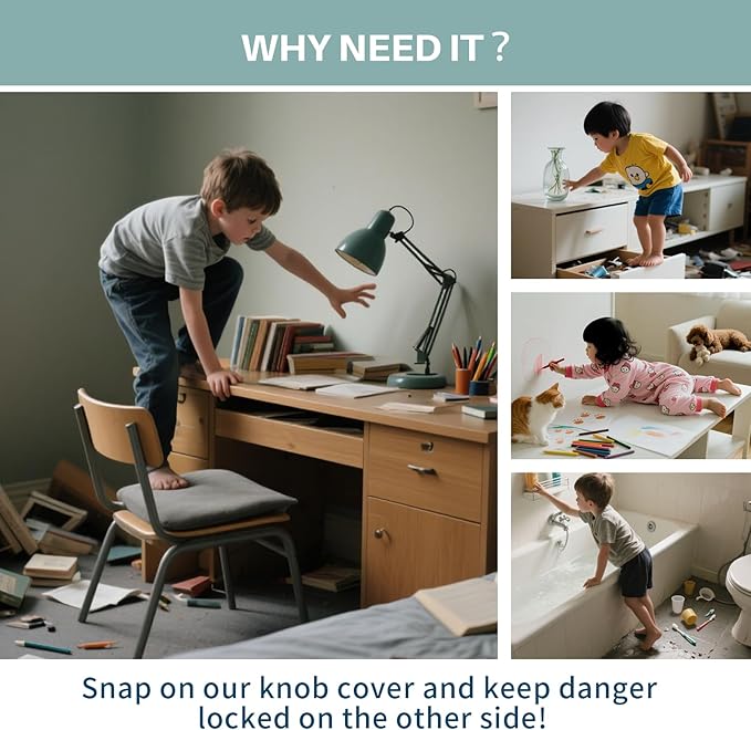 • πŸ”’ Child Safety First -- These door knob safety covers for kids stop toddlers from opening doors to unsafe areas. A must-have for childproofing your home.