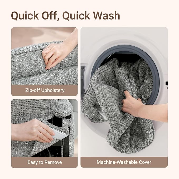 • π—˜π—”π—¦π—¬ 𝗧𝗒 π—–π—Ÿπ—˜π—”π—‘ & π—™π—”π— π—œπ—Ÿπ—¬-𝗙π—₯π—œπ—˜π—‘π——π—Ÿπ—¬:come with removable covers that are fully machine washable. No need to worry about milk spills, stains, or messes from daily breastfeeding and children’s playβ€”keeping your nursery chair fresh and hygienic with ease