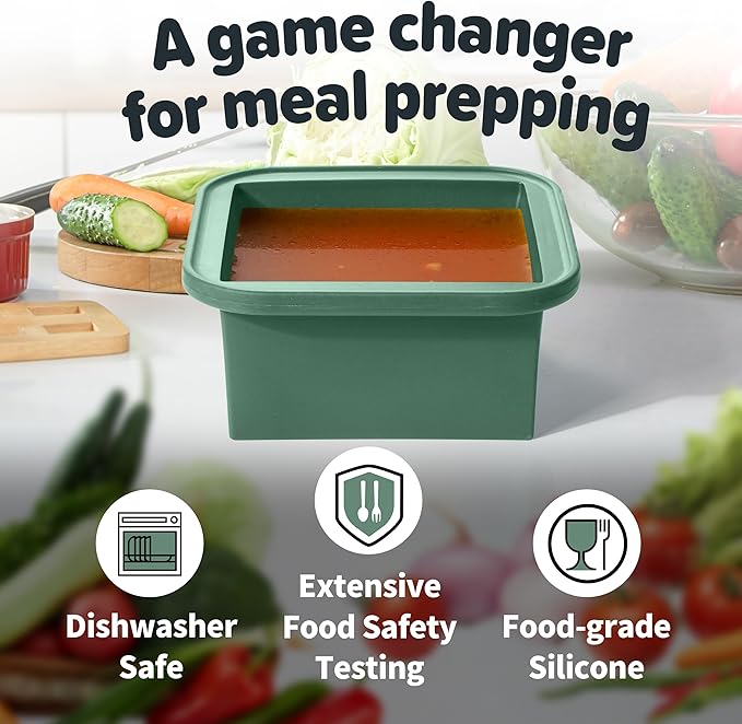 • VERSATILE & CONVENIENT FOR ANY KITCHEN TASK Use them for: Freezing homemade soups, sauces, and broths Storing baby food and portioning snacks Baking (up to 415°F without the lid) Making ice cubes, chocolates, and more! Dishwasher-safe for quick and easy cleaning, they save you time in the kitchen.