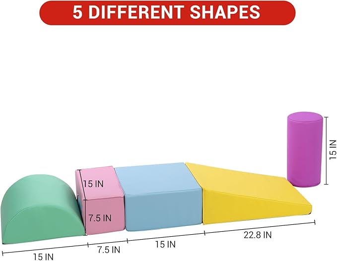 • 6-Piece Set: Includes triangle, large cuboid, small cuboid, half moon, arch-shaped and cylinder. Designed for ages 1–3, this climbing toy sparks imagination with endless configurations, letting kids enjoy climbing, stacking, and rearranging shapes.