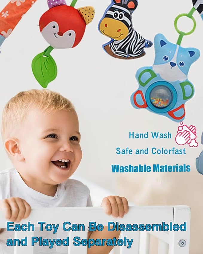 • Car seat toys,It is an early development toy.crib toys hanging made of washable materials.Each stroller toy can be detachable dsassembled and played separately.